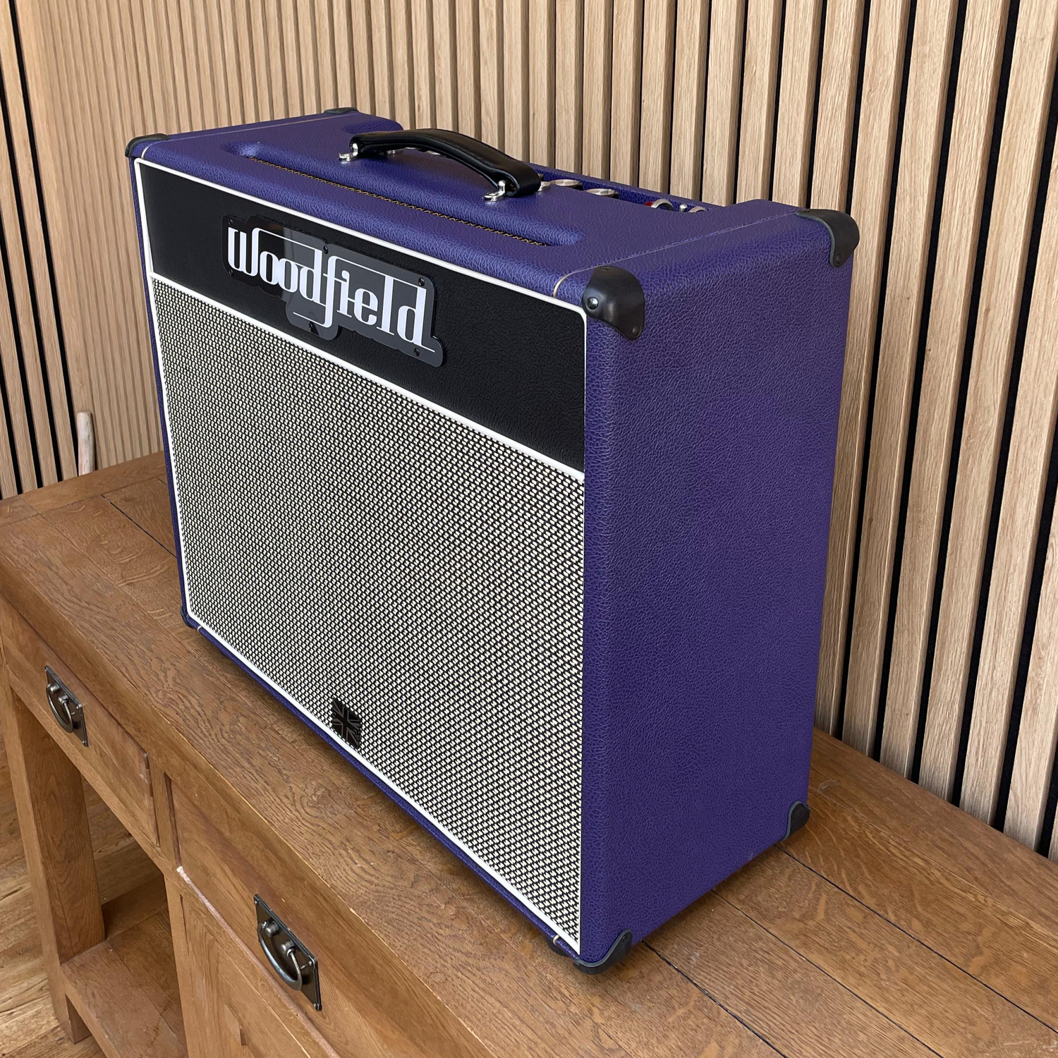 Purple Levant Tolex cabinet with a black front panel and a salt and pepper grill