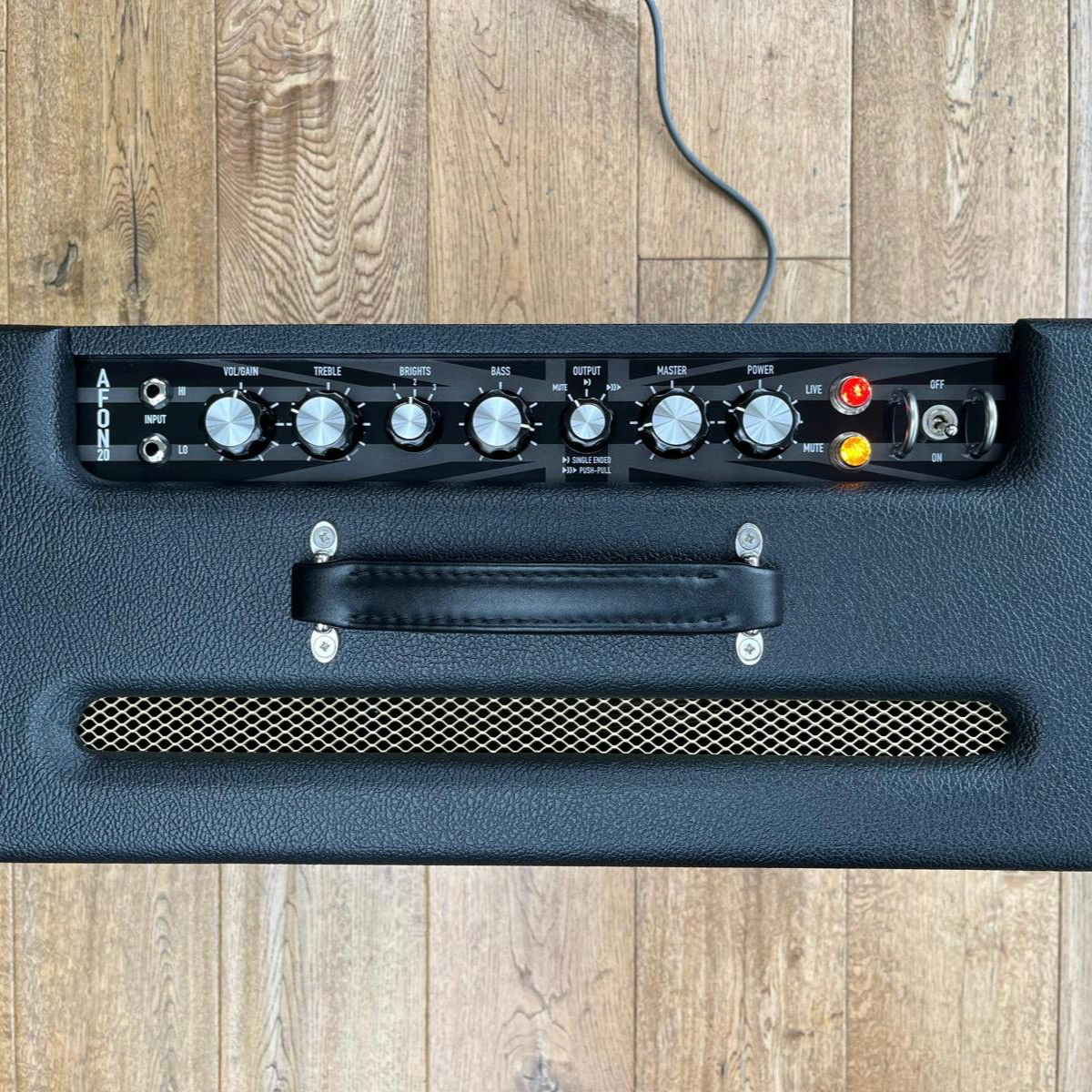 Black Tolex cabinet with a black front panel and a salt and pepper grill