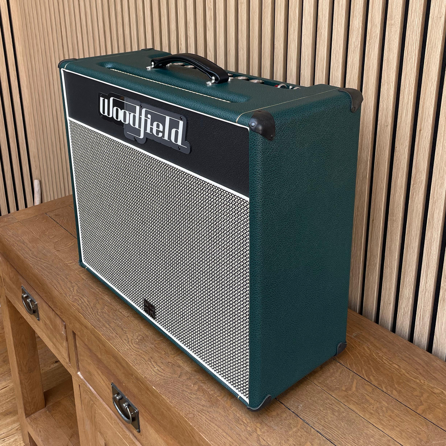 British Racing Green Tolex cabinet with a black front panel and a salt and pepper grill